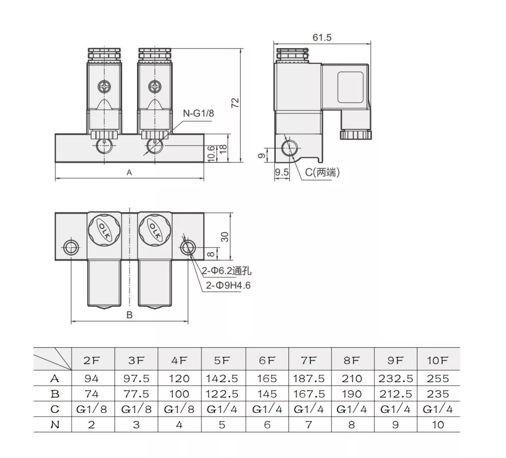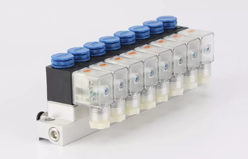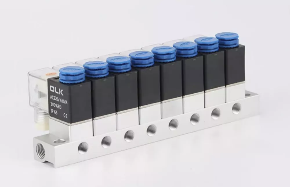 2V025 tvåläges, tvåvägs direktverkande normalt stängd magnetventil kan anslutas för att bilda en ventilbas enligt applikationskrav, med flexibel expansion från 2 till 12 lägen. Detta multistations 2V025 magnetventilförgreningsrör har en kompakt och lätt design men kan inte tas isär för individuell användning. Ventilhuset är tillverkat av högkvalitativ aluminiumlegering och använder NBR tätningsmaterial.