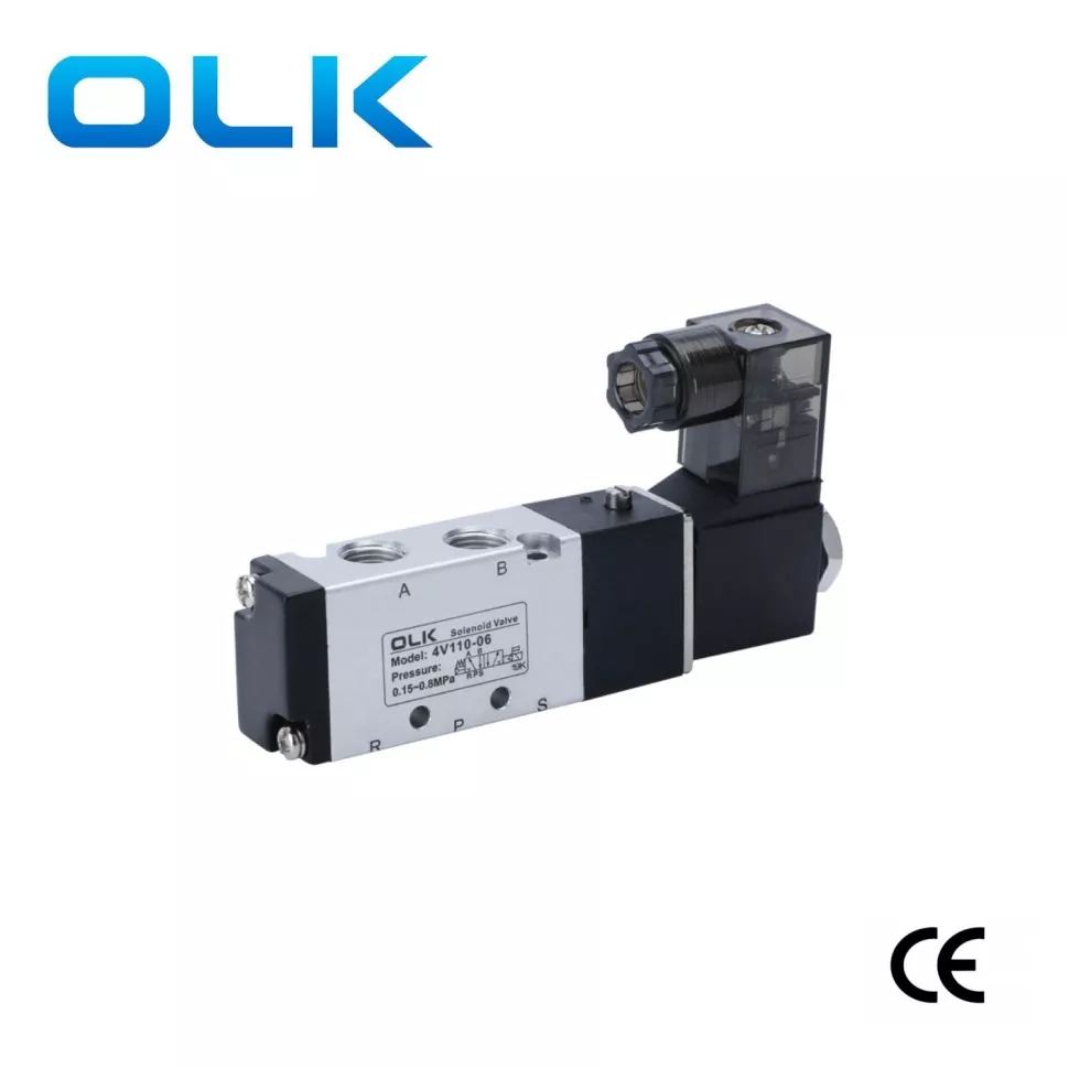 OLK 4V100 magnetventil 5 väg, 5/2 väg pneumatisk magnetventil passerade CE -certifiering. Utseendestorleken är den minsta modellen, med en kompakt design och en gränssnittsspecifikation av 1/8 ''. 4V100 magnetventil är lämplig för mindre pneumatiska system med lägre flödeshastigheter. Appliceras på små enheter eller små cylindrar som kräver exakt kontroll.