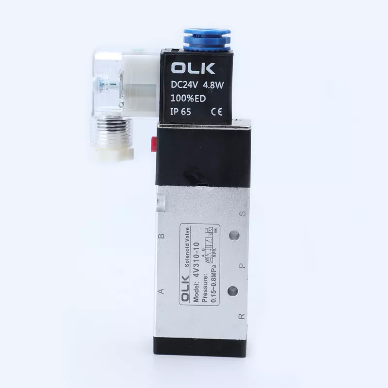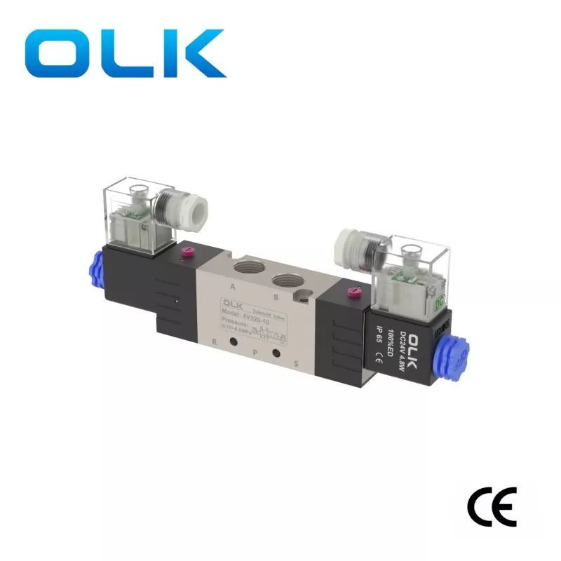 OLK 4V300 Solenoid Valve 5 Way, 5/2way, 5/3 vägs pneumatisk magnetventil. Den inre väggen i 4V300-serien Solenoidventil är slät, tätningsringen är hållbar och slitstöd och den kan användas under en längre tid. Solenoidventilens tätningsring med låg motstånd har hög frekvensstabilitet.