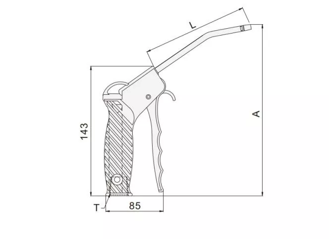 Högkvalitativa tätningsringar säkerställer minimal luftläckage. Det ergonomiska handtaget är tillverkat av hållbart, rostresistent material, och den ena handtryckaren möjliggör exakt kontroll av luftflödet. Levereras med en PC -kontakt för enkel användning.