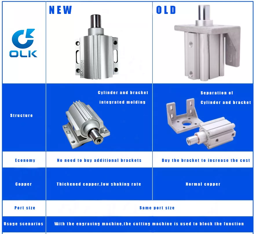 OLK PNEUMATIC har två typer av cylindrar för att möta olika scenkrav. För specifik information, vänligen kontakta OLKs säljteam.