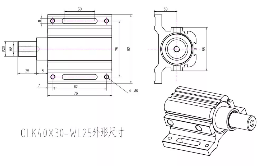 OLK Engraving Machine Positioning Cylinder är en specialiserad pneumatisk cylinder designad för CNC-gravyr och fräsmaskiner. Dess primära uppgift är att hålla arbetsstycken på plats eller trycka in dem i rätt position innan bearbetning. Den är byggd för att vara kompakt, stark och motståndskraftig mot damm och spån som skapas under gravering.