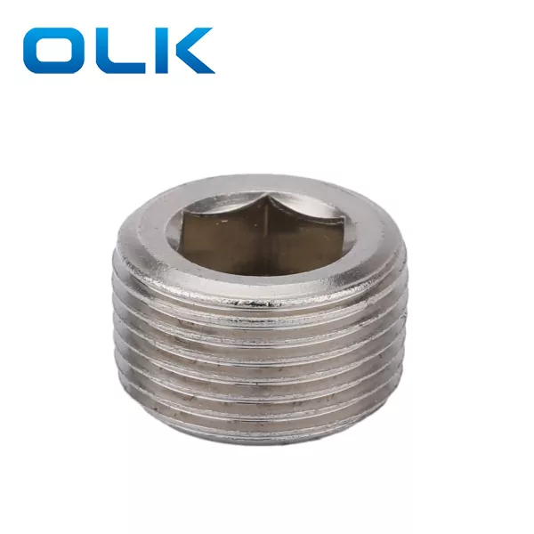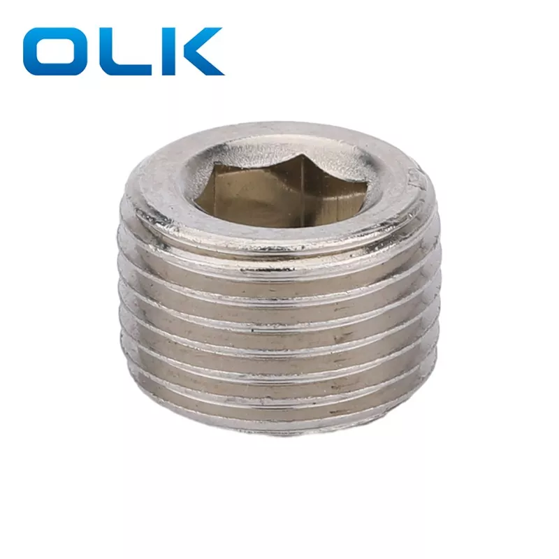 Hex.Socket -pluggar som också kallas rörlock, slutkåpan eller plugg, den är installerad direkt på de yttre trådarna på ett rör för att stänga rörledningen utan ytterligare beslag. Det används ofta i rörsystem, hydraulisk och pneumatisk utrustning och mekaniska anordningar.