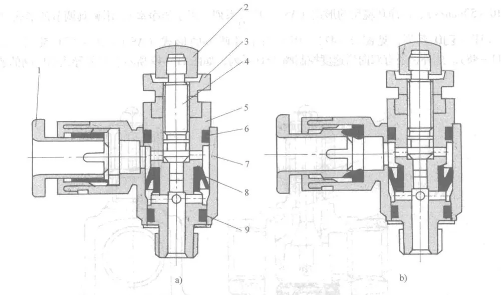 SL flödesreglerventilens funktion uppnås genom en envägs tätningsring. Bild (a) visar avgasstrypning och bild (b) visar inloppsstrypning—skillnaden kommer endast från tätningsringens installationsriktning.
