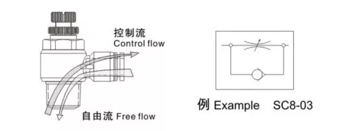 Från funktionssymbolerna kan vi se att både avgas- och inloppsflödeskontrollventiler är envägs-trottelventiler, som styr flödet i endast en riktning samtidigt som det omvända luftflödet kan passera fritt. För dubbelverkande cylindrar är avgasgasventiler att föredra för att förbättra cylinderrörelsestabiliteten. För enkelverkande cylindrar, som vanligtvis använder en fjäder för förlängning eller indragning när det inte finns någon lufttillförsel, måste gasen övervinna fjäderkraften under drift, så inloppsgasventiler är lämpliga för varvtalsreglering.