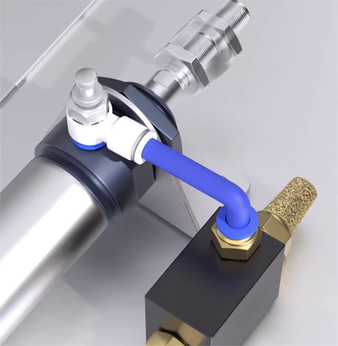 Vanliga tillbehör inkluderarPU-rör, insticksbeslag (M5, G1/8, G1/4), gängade kopplingar ochljuddämpareför stabil och snabb pneumatisk anslutning.