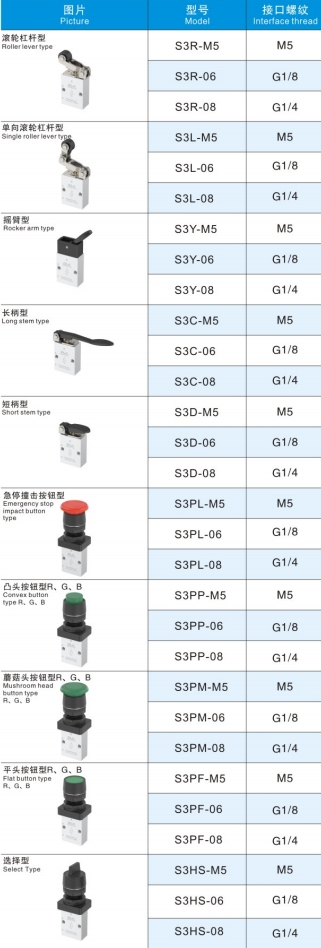 2. S3PF, S3PM, S3PP, S3PL, S3Y, S3HS, S3C, S3D -serien manuellt drivs, med olika strukturella former av kontrollhuvuden för bekväm användning under olika förhållanden.