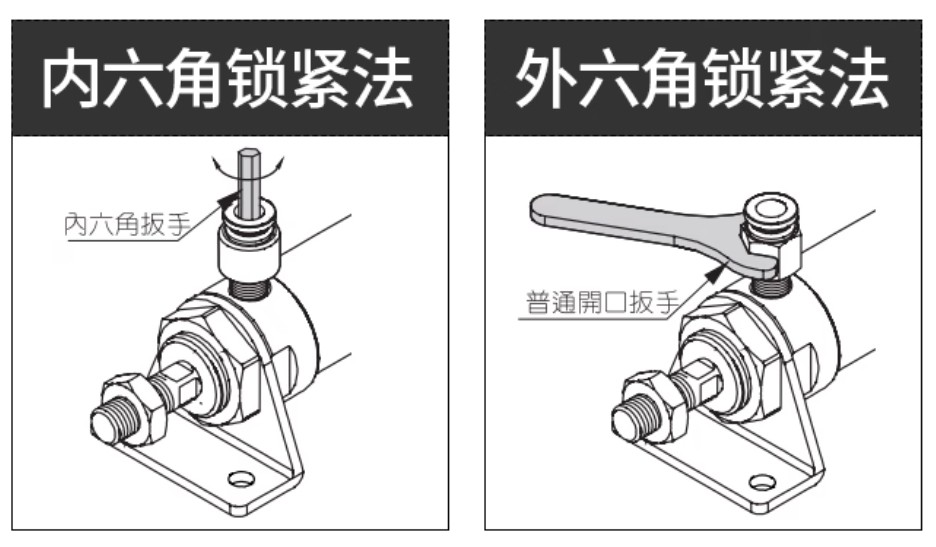 Använd en insexnyckel eller en insexnyckel för att skruva fast kopplingen i cylinderns luftintags-/utloppsgängor enligt bilden. Se figuren för åtdragningsmoment.