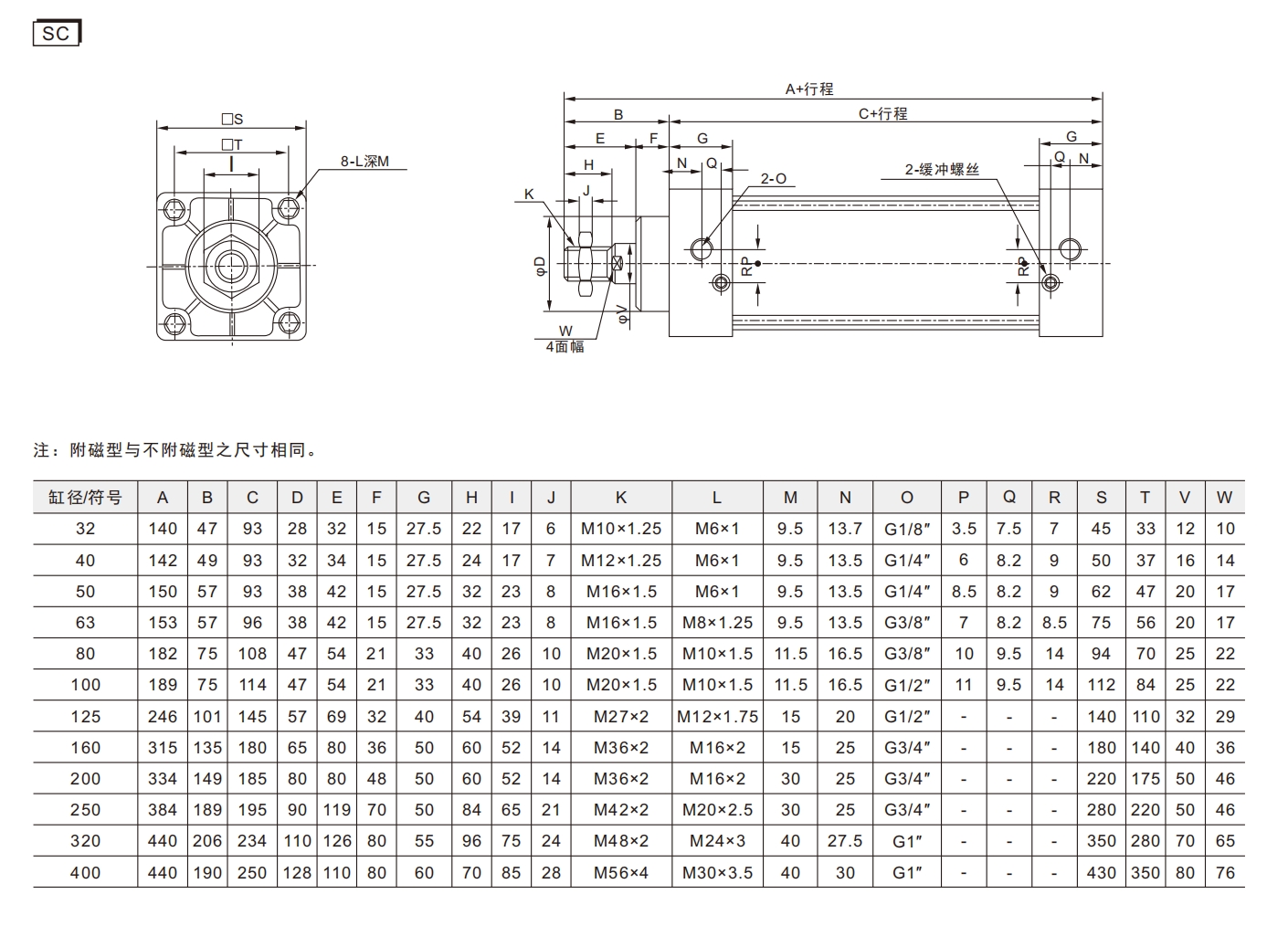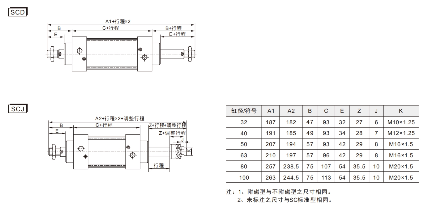 4. Jämfört med IS015552 Standardcylindrar har SC -seriencylindrarna mindre längder för samma cylinderdiameter.