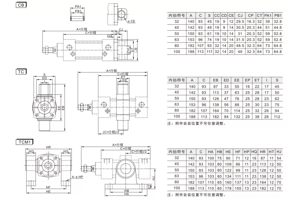 · Olika cylinderspecifikationer och monteringstillbehör finns tillgängliga för kunder att välja mellan.