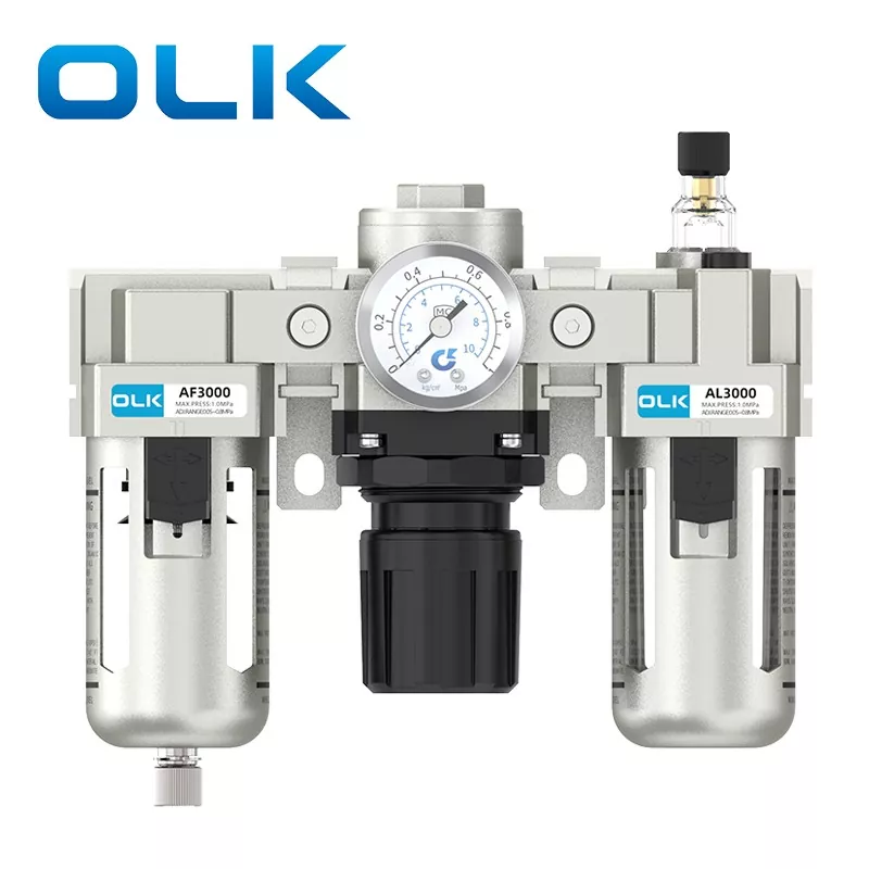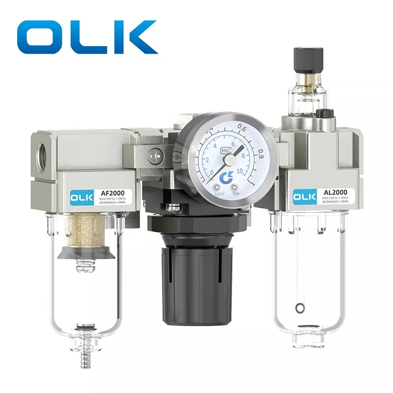SMC Typ AC FRL-enhet (Filter-Regulator-Lubricator) är en pneumatisk grundkomponent som integrerar luftkällafiltrering, tryckreduktion och reglering samt smörjbehandling. Den ger ren, stabil och smord tryckluft för pneumatiska system, vilket förlänger livslängden för pneumatiska komponenter och förbättrar systemets stabilitet. OLK AC Series FRL-enheten fungerar som den väsentliga "väktaren" för moderna pneumatiska system.